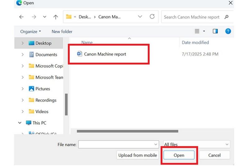 e. Then click ‘Open’ and locate the saved image on your computer